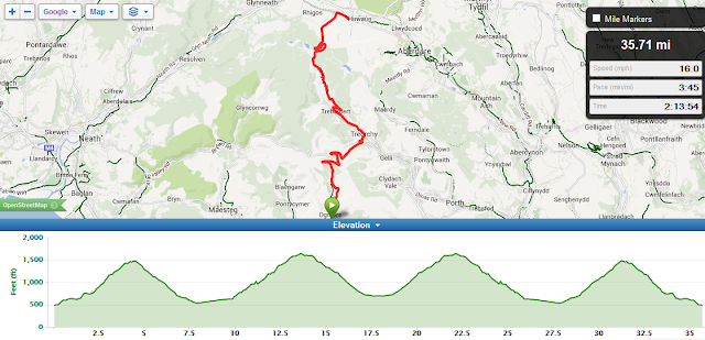 The route came to just over 35 miles and about 4000ft of climbing. It also meant there were a number of bail out points as I could, for example, avoid the final descent of Rhigos and turn back having got to the top. A 35 mile route at home would be a non-ride - easy and nothing to to even think of, however the 4000ft of climbing was a significant challenge given the sort of riding I have been doing this year, but I was fully confidant that I could if necessary crawl up in the 34-28 gear.